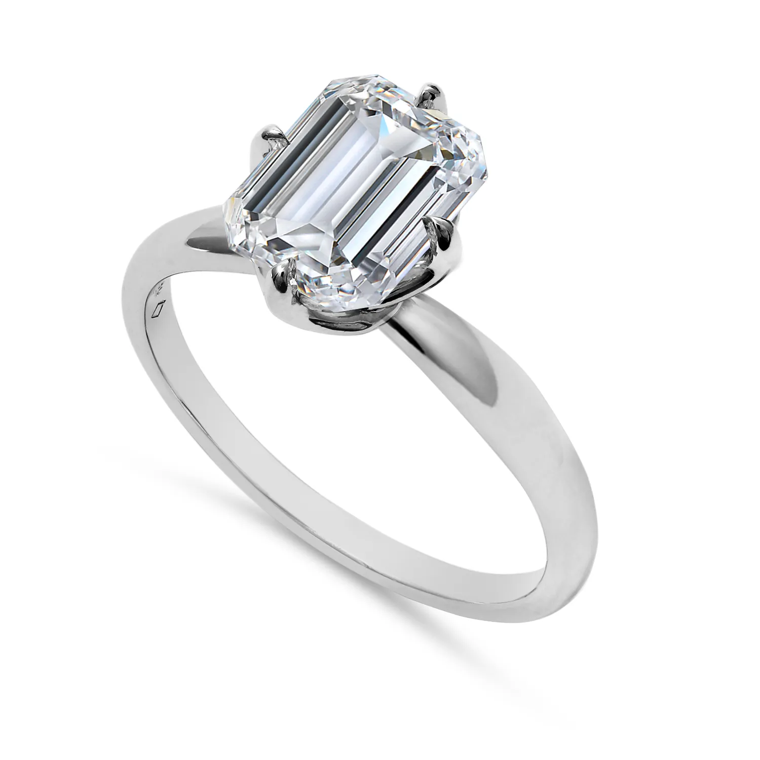 Signature Compass Set Emerald Diamond Solitaire Engagement Ring
